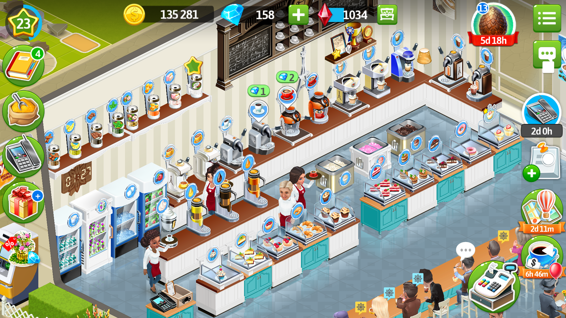 It's a very mixed bag, from my view. We don't want our game to become boring and last 15 minutes at best. Recipes and stories has a lot of equipment: To avoid having to move, you should have left as many coffee cups as can fit on top of your machine so you can just reach for one and start the shot immediately . Iceberg, northern lights style, my cafe game, #mycafe #mycafegame.